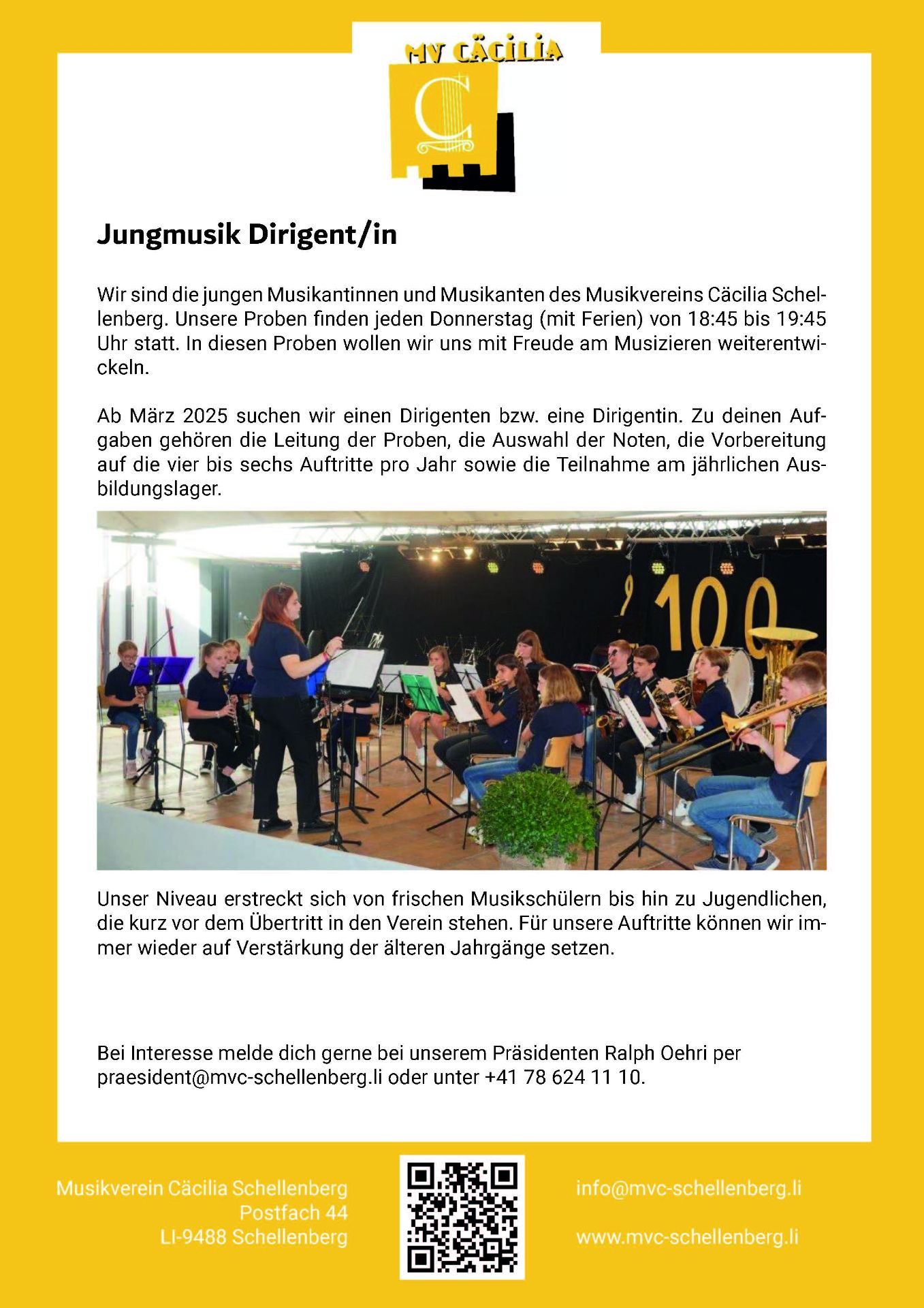 Ab März 2025 suchen wir einen Dirigenten bzw. eine Dirigentin für unsere Jungmusik. Genauere Informationen kannst du aus der Stellenausschreibung entnehmen.